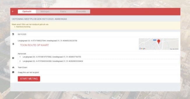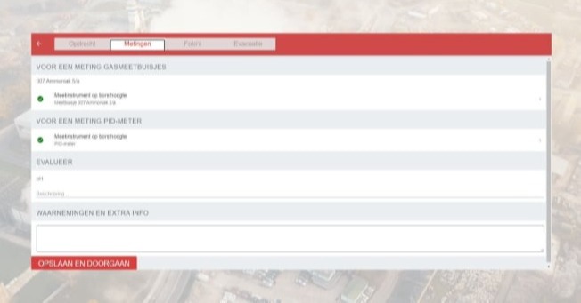 Elke melding van een incident met gevaarlijke stoffen wordt rechtstreeks aangemaakt in de applicatie inclusief de exacte meetpunt(en) en de stofgegevens waarop gemeten moet worden.