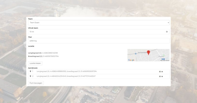 Automatische omzetting van incidentlocatie in GPS-coördinaten voor de meest ideale aanrijdroute en exacte meetpunten in het bron- en effectgebied.